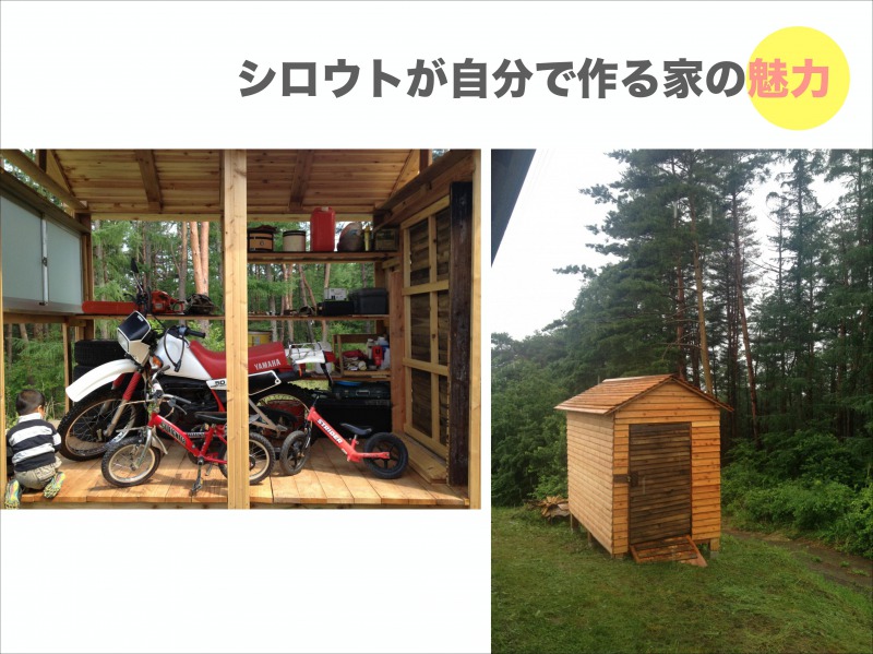 うまく完成したように見えますが、実は雨漏れして屋根をやり直したり、扉の建て付けが悪くなってしまったり、、、と。なかなか苦労して建てた小屋です。