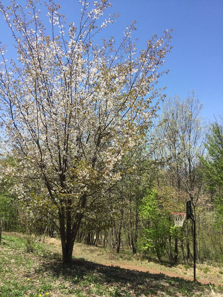 9年前、新築当初に小さな苗木を買ってきて当時2歳の上のボウズと一緒に庭に植えたサクラの木。