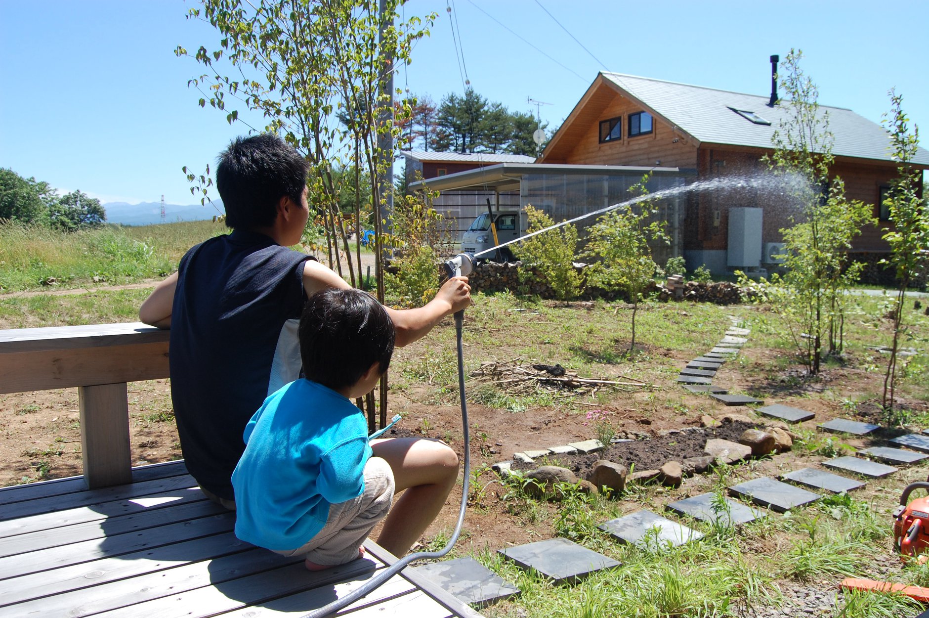 ボウズたちの庭の木にツリーハウスを作りたい、という夢を叶えるべく、