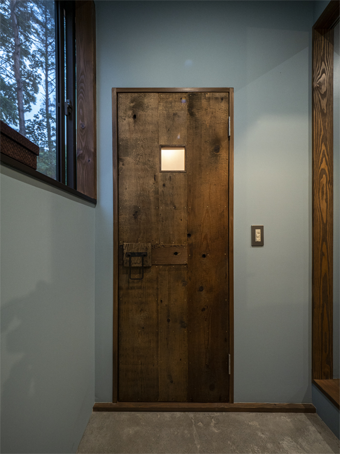 古材を利用したトイレの木製建具。