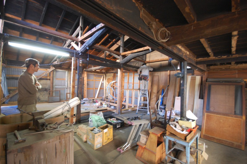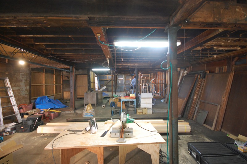 一番奥のスペースに床を作り、一部に厨房スペースを作ります。