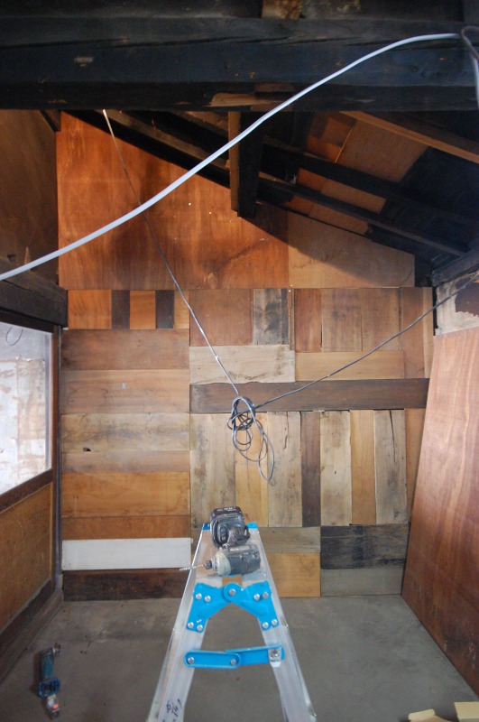 中学生、高校生にも手伝ってもらった古材の壁もできました。