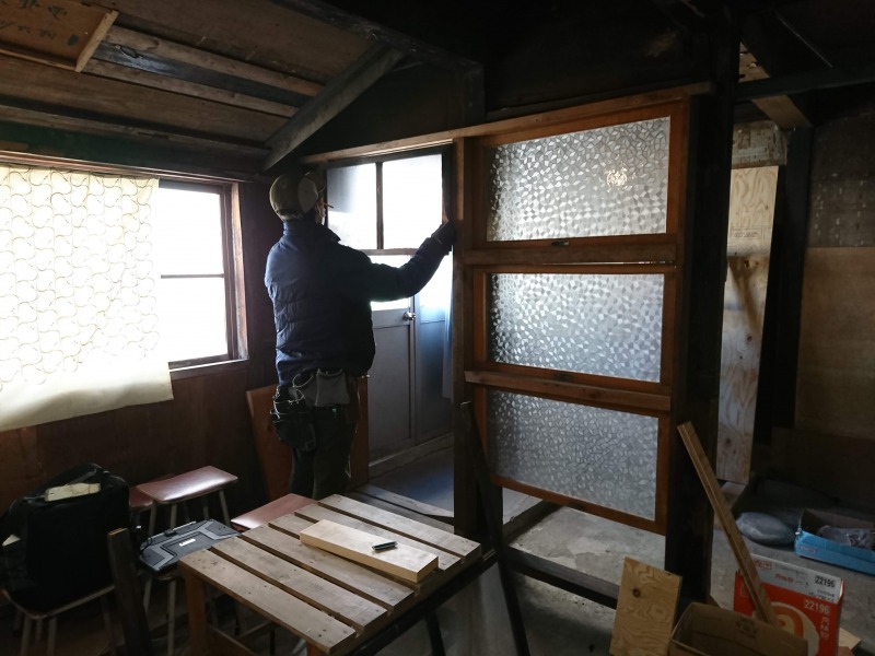 古建具と古ガラスと古材をフル活用して。