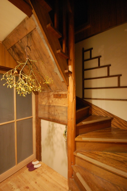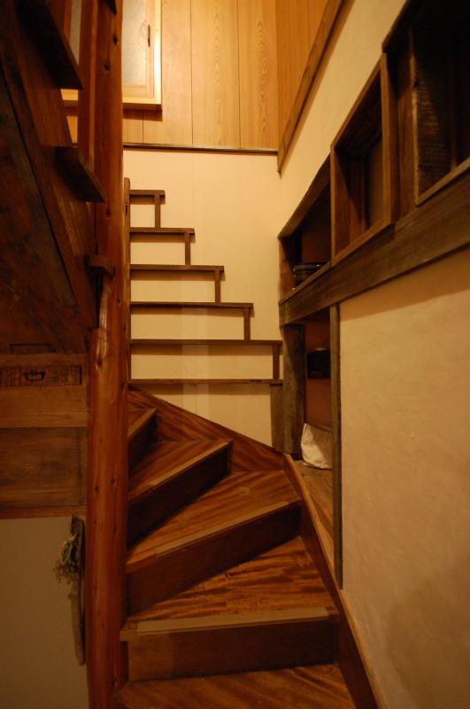 吹抜けを兼ねた階段を薪ストーブの熱と一緒に二階にのぼると
