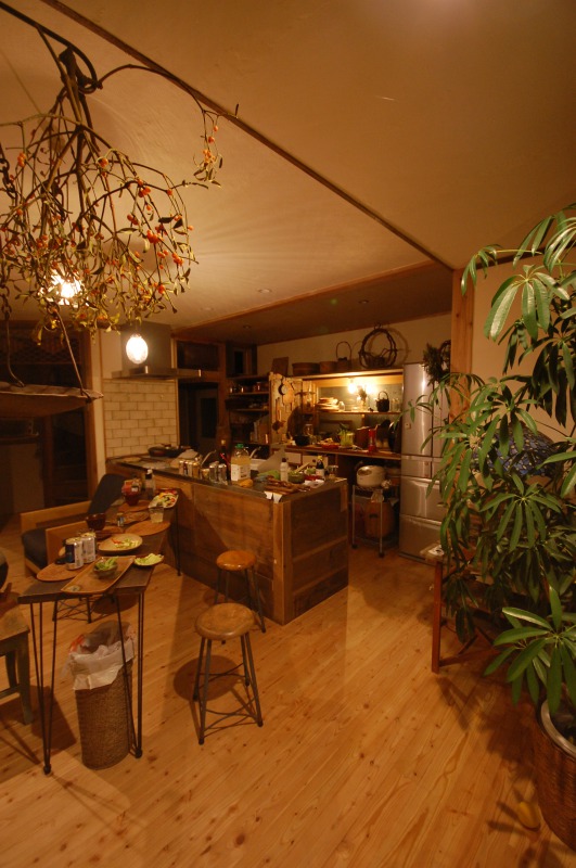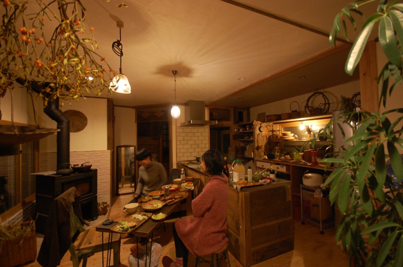 植物とステキな小物と薪ストーブのぬくもりとおいしいおいしい料理に包まれた完成パーティー。