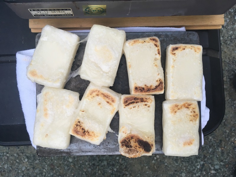 餅を焼いて、昨日のすき焼きの残りに投入。