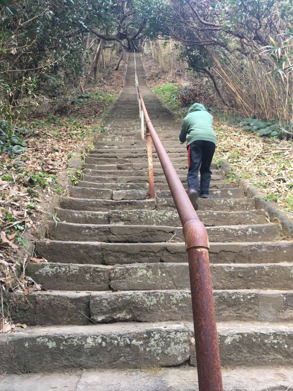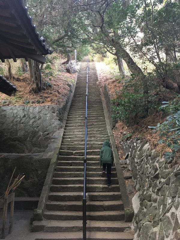 石段130段、石段320段、山道…。