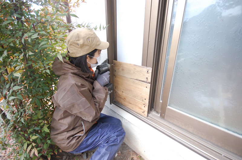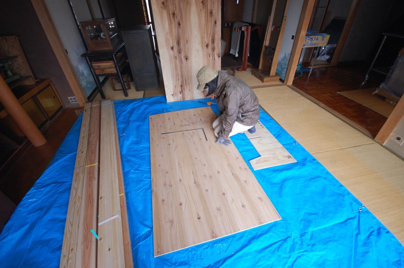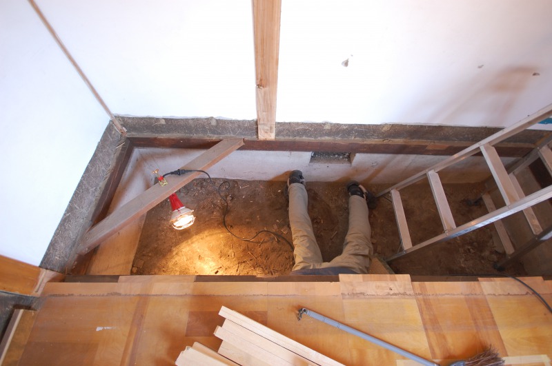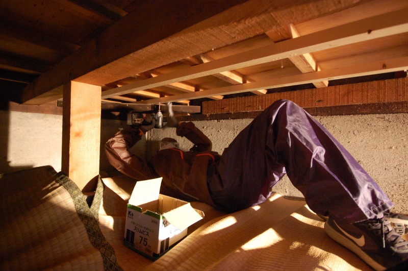 お父さまにも床下に潜っていただき、作業の下準備をしていただきました。