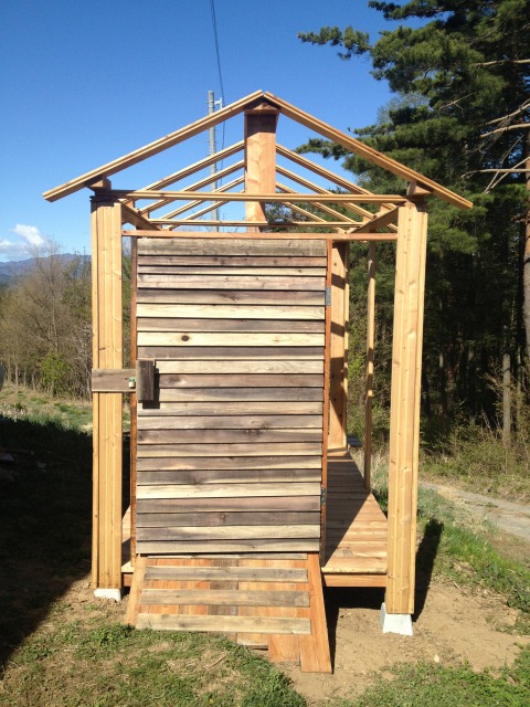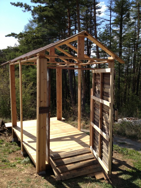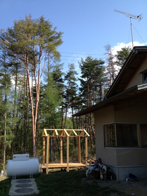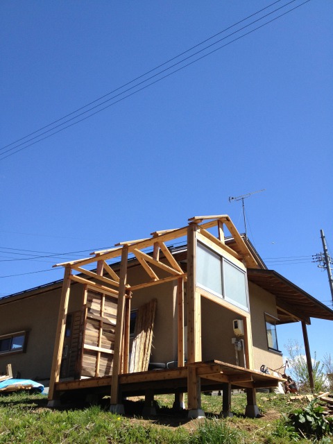 「小屋つくってんだ?ボロいサッシでよければあげるけど」