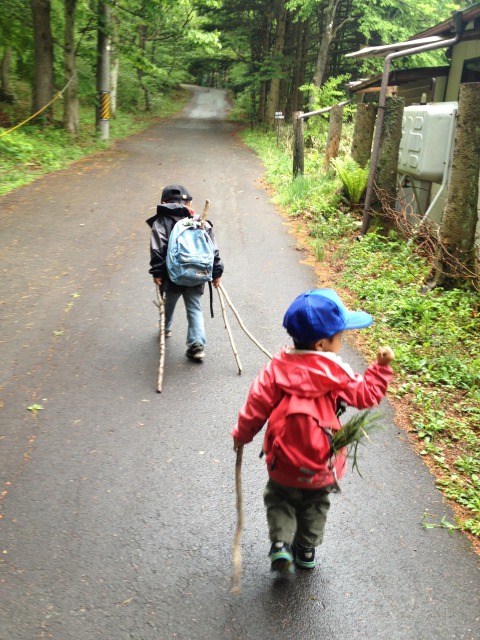 さくじろう(次男)のリュックにはナゼか大切そうな草束。