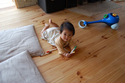 無垢材の床はやわらかくて