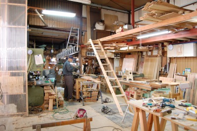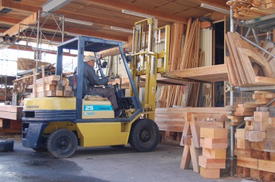 手刻みに対して、工場で機械が木を刻んでいくのを