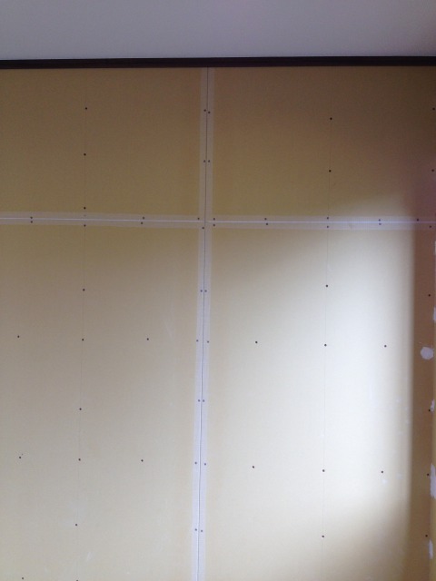 石膏ボードの継ぎ目にジョイントテープを貼って