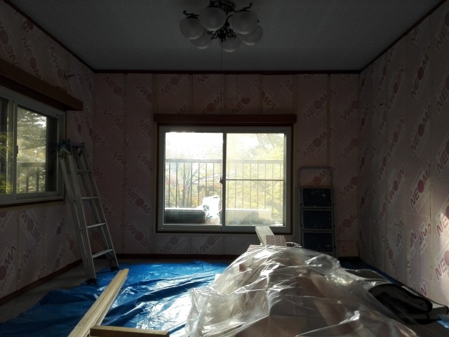 夜中までご夫婦で断熱材充填を
