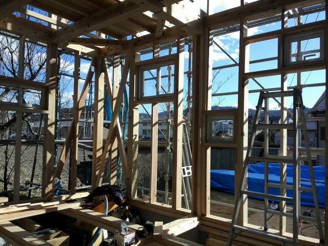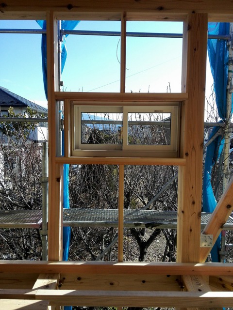 サッシを取り付けてます