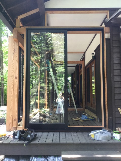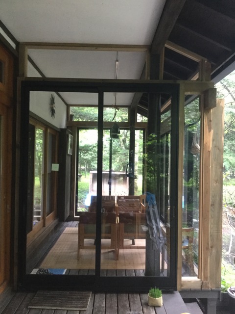 南側も大きなサッシとアコーディオンの網戸を付けて
