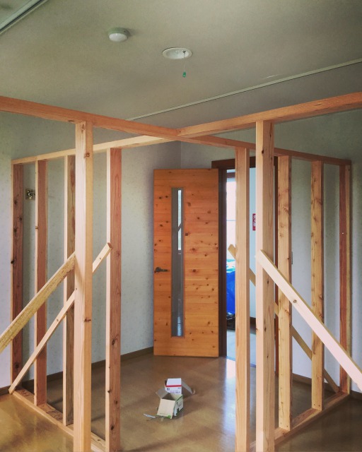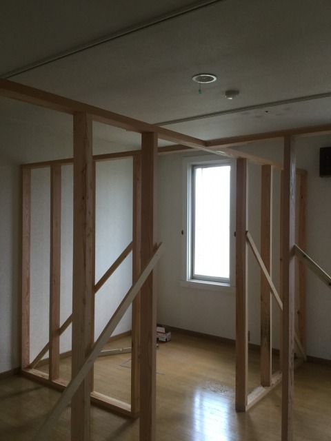 間仕切り壁の下地を組みます