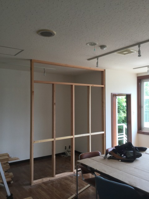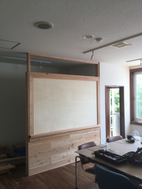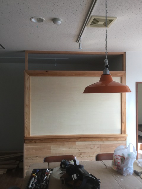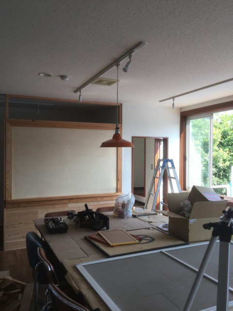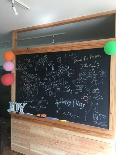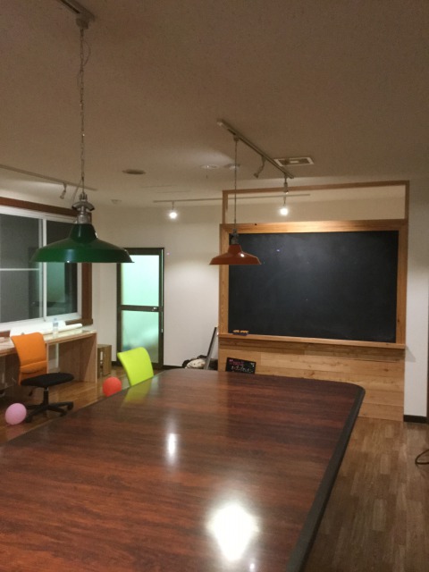 間仕切り壁の黒板も大越さんに黒板ペイントを塗ってもらい