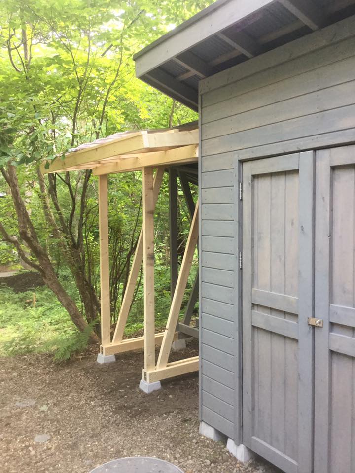 「ここに垂木を掛けて、材料はこれを使って、ここをこーして、あーして…こう作ろうかと。