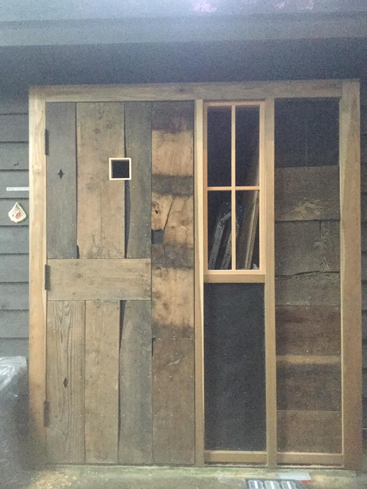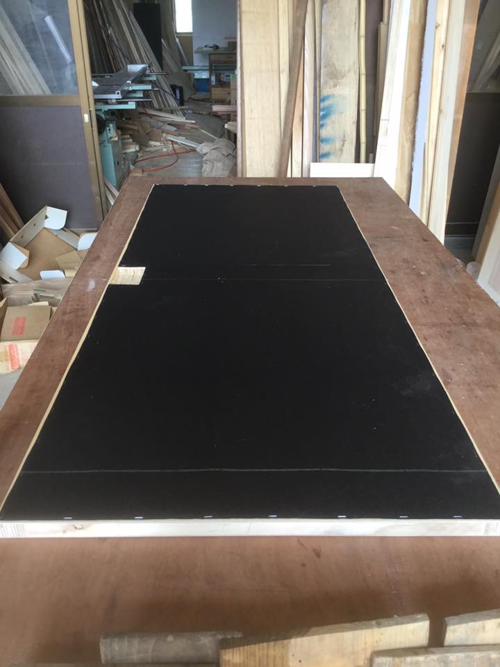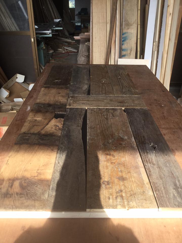 だから建具屋さんにフレームを作ってもらって、お化粧に古材を張り付ける。