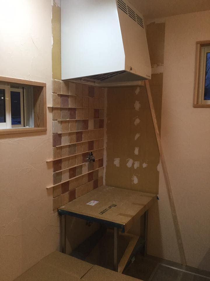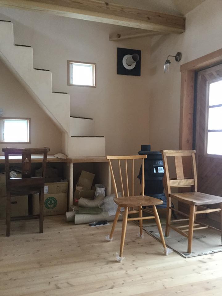 今度は薪ストーブ廻りを仕上げて、いよいよ薪ストーブに火入れです
