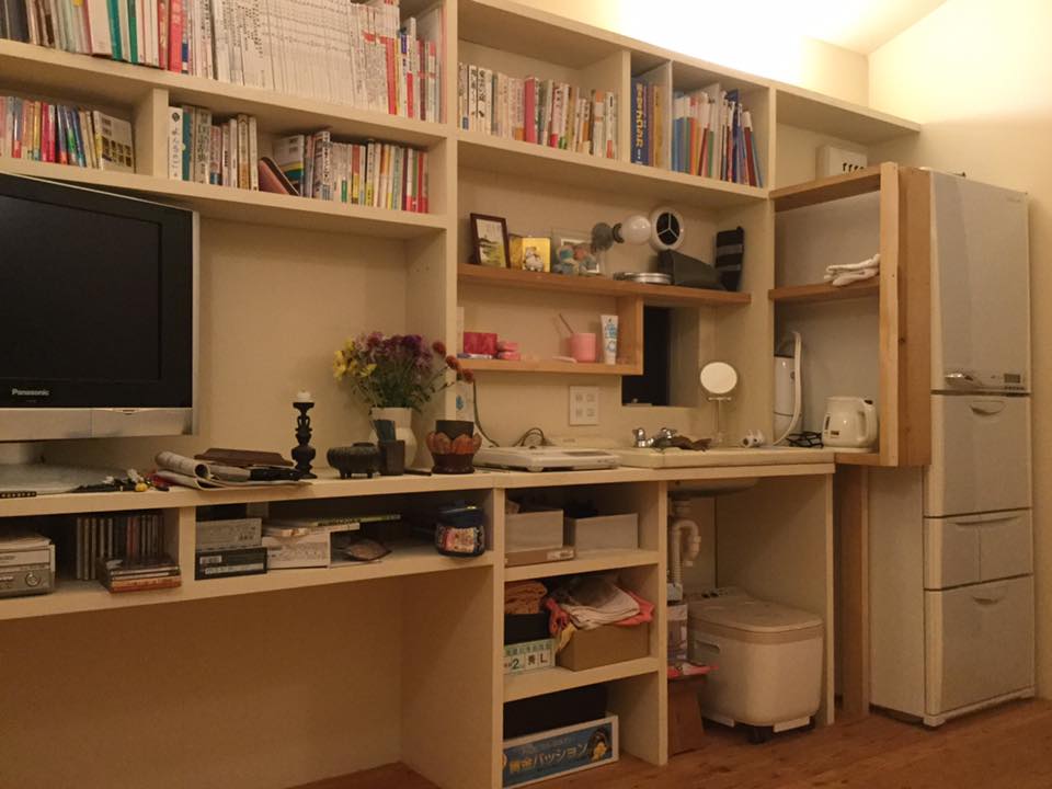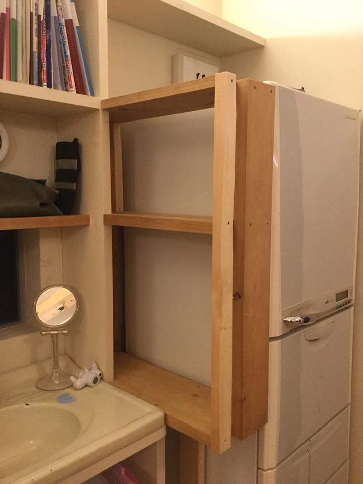冷蔵庫脇とシンク上にもあり合わせの材料で追加