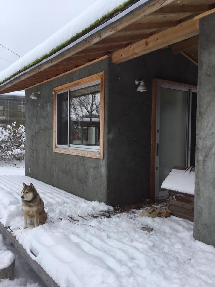 今日はボクがコケ屋根の小屋に宿泊