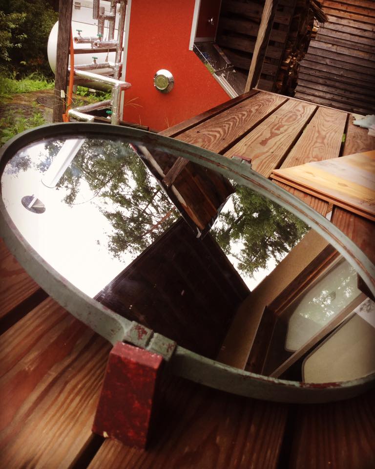試しにいただいたプラスチック製の鏡をヴィンテージのサビた鉄製風?にエイジング塗装