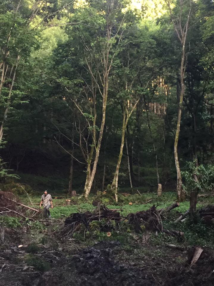 あとは竹林整備で作った竹炭を敷き込こんで、表土を戻して完成!