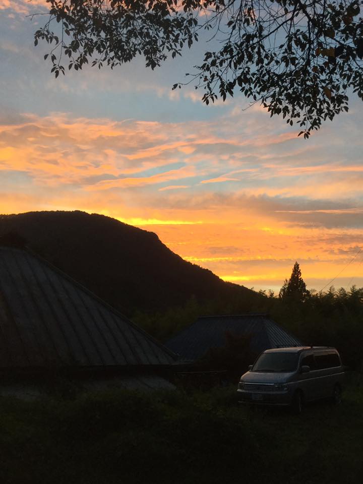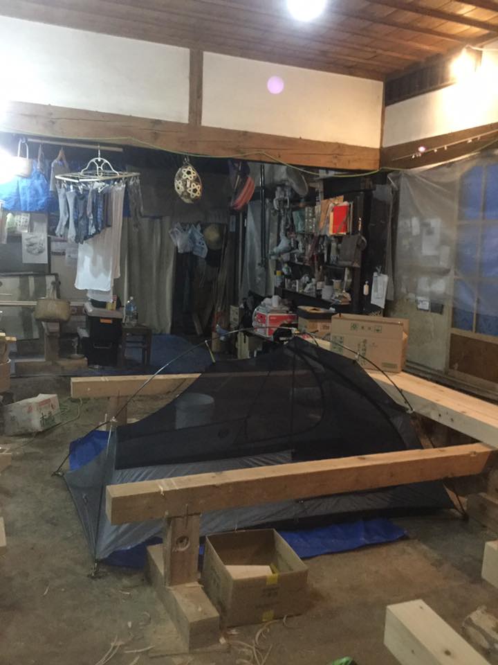 いーい気分のまま崩れるように相棒の加工場の土間でテント泊。