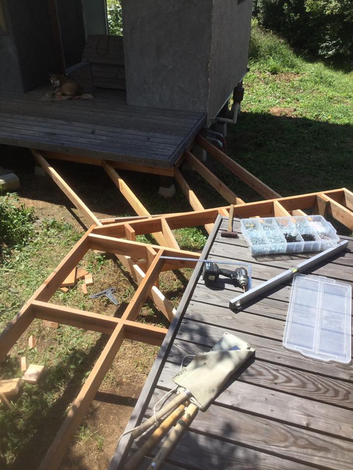離れ小屋への渡り廊下的ウッドデッキできました 2024 7/05 田舎暮らしの自邸 2017/09/082024/07/05 今を逃すとおそらく雪が降るまでにできないので、 ちょっと全体的にやっつけですが、 渡り廊下的ウッドデッキできました。 よかった。 えんがわ商店の「おためしコンサルプラン」はコチラ!DIYオンラインコミュニティ「えんがわラボ」入会相談はコチラ! 田舎暮らしの自邸 ウッドデッキ 渡り廊下 離れ小屋 この記事が気に入ったら いいね または フォローしてね! Follow @engawashoten Follow Me よかったらシェアしてね! URLをコピーしました! 何よりもまずはじめに絵 自分で手探りでホームページを開設して間もなく5年になります 関連記事 丘の上を好む将軍が立つ御牧原台地。 2020/03/05 10年越しで向こう側の丘に立つ。 2020/02/24 当たり前じゃない、ということを忘れない。 2019/11/10 目隠しを兼ねた薪小屋を増設。 2019/05/14 薪ボイラーで火遊びをしながら小休憩。 2019/05/14 庭作り9年越しのビフォー&アフター 2018/05/10 夕陽が昇る丘の上 2018/04/02 らしい雪景色 2018/02/02
