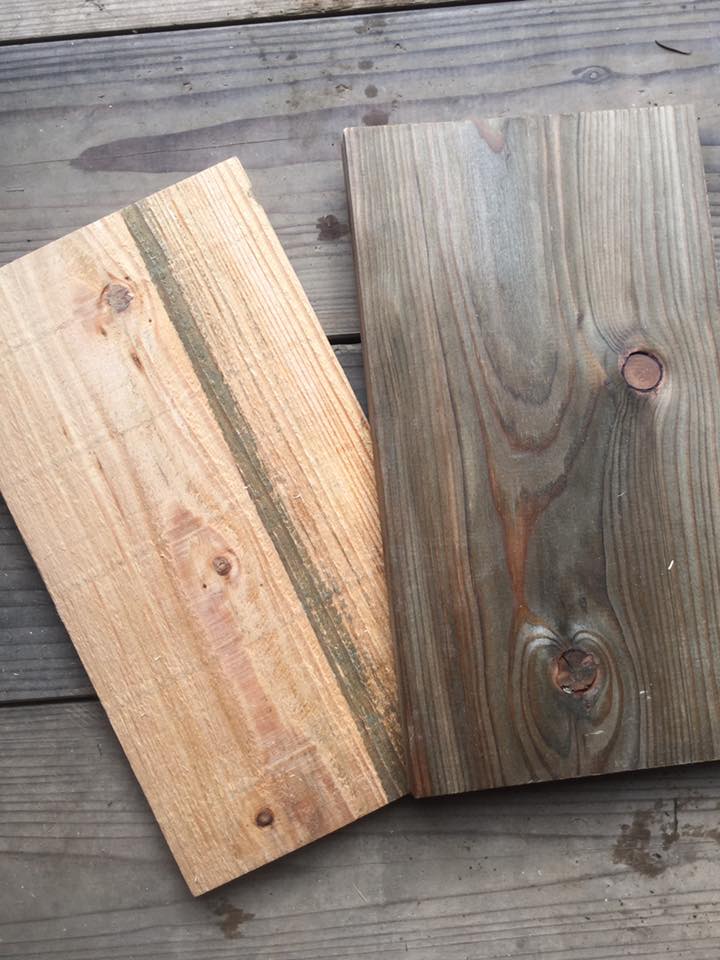 木が変色して古材風に。