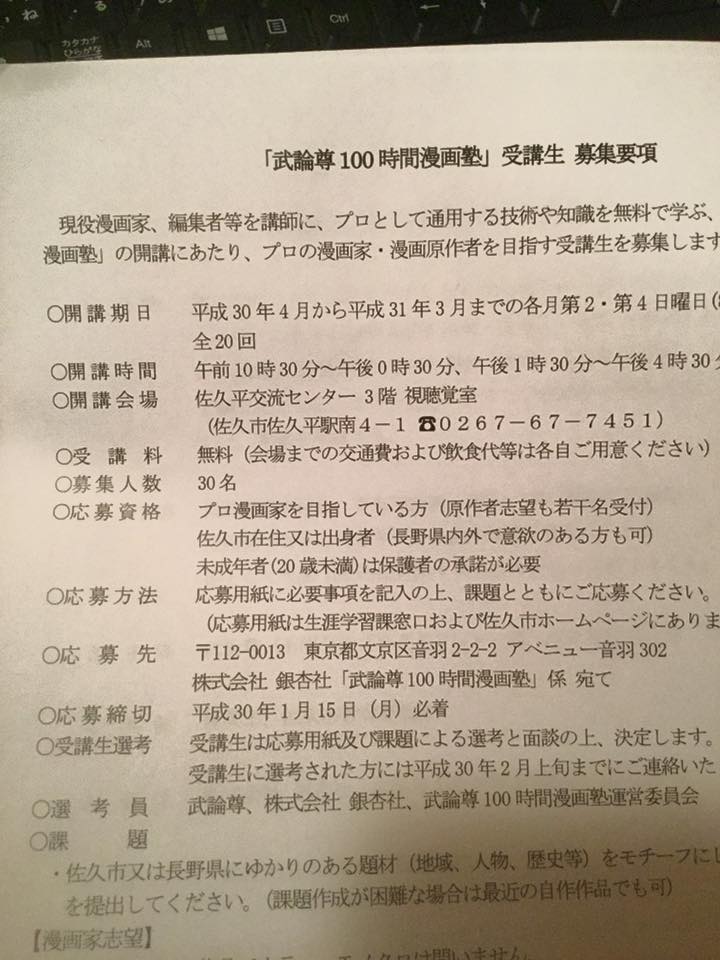 100時間漫画塾の受講を目指し応募、チャレンジ。